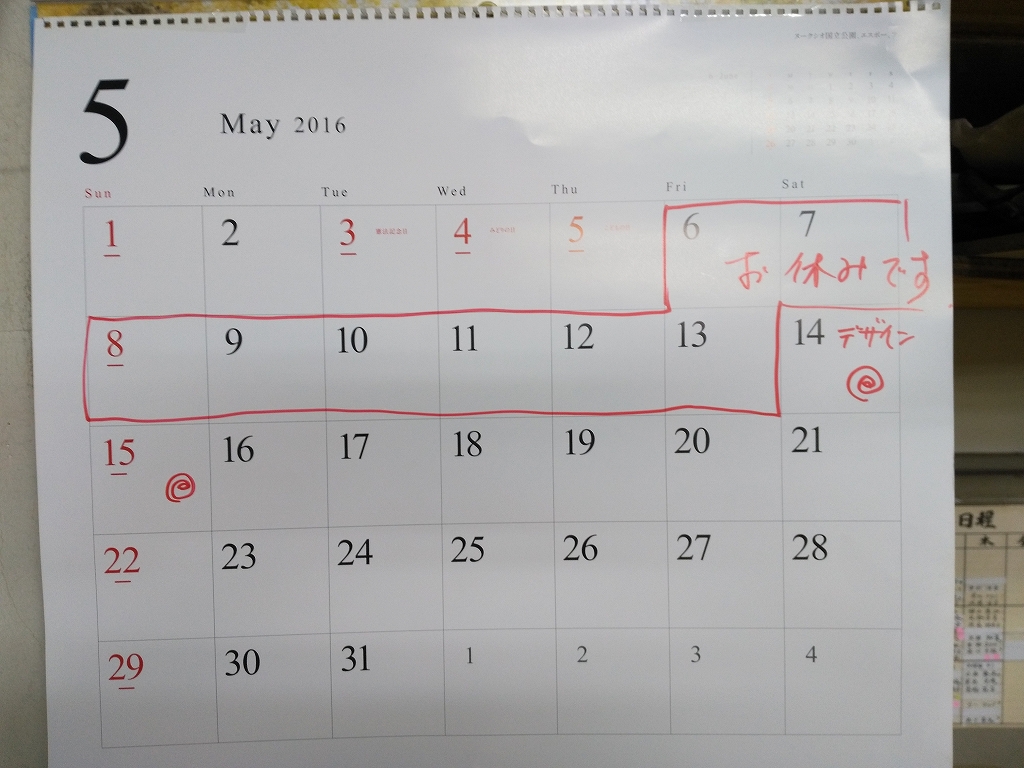 2016年ゴールデンウィークのお休みのおしらせ
