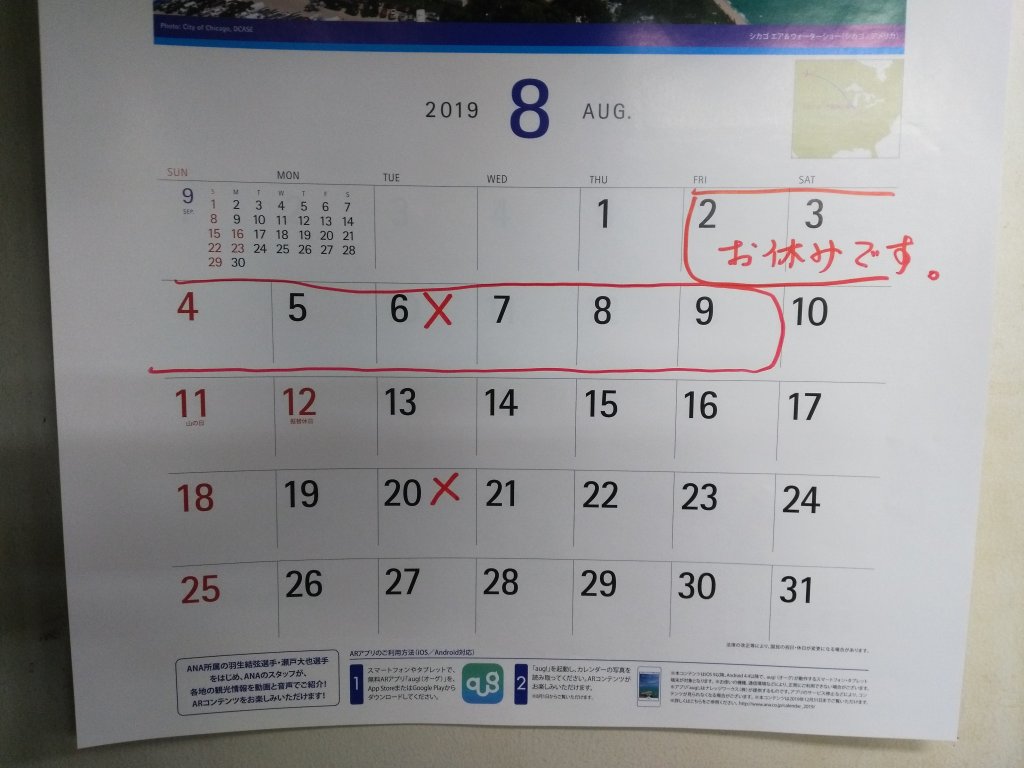 今年の夏休みは、8/2(金)~8/9(金)の8日間です。