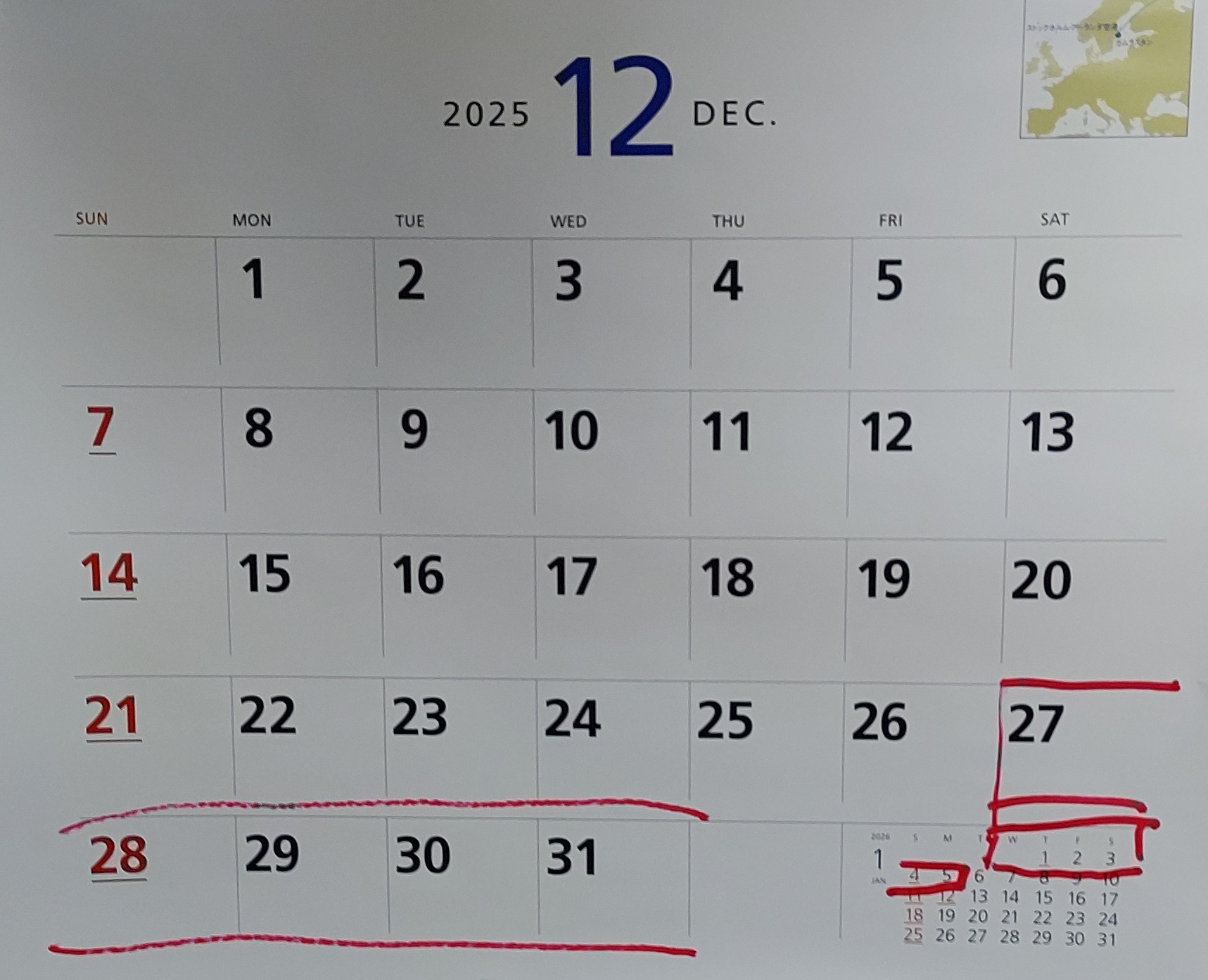 2025年12月27日(土)~2026年1月5日(月)まで