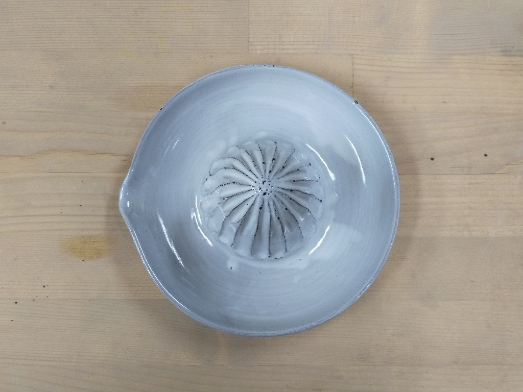 絞り用の中央部分と、受け皿部分、さらに注ぎ口と、すぐに使ってみたくなる作品です。