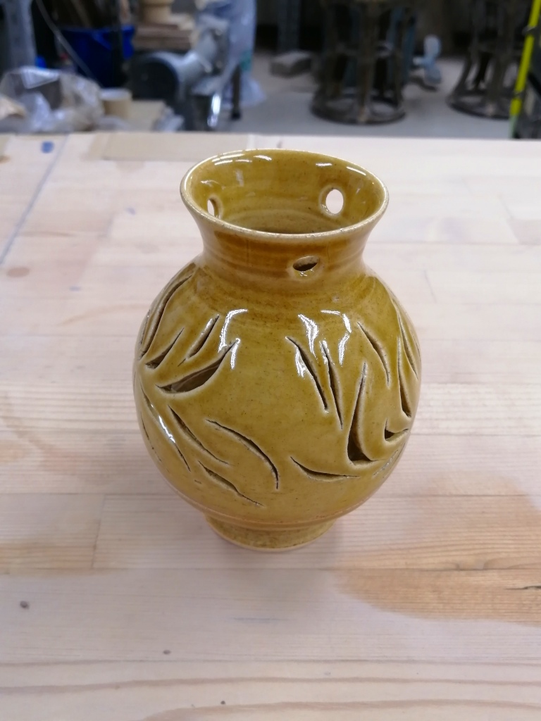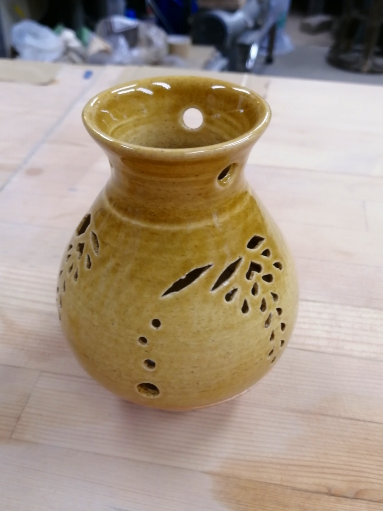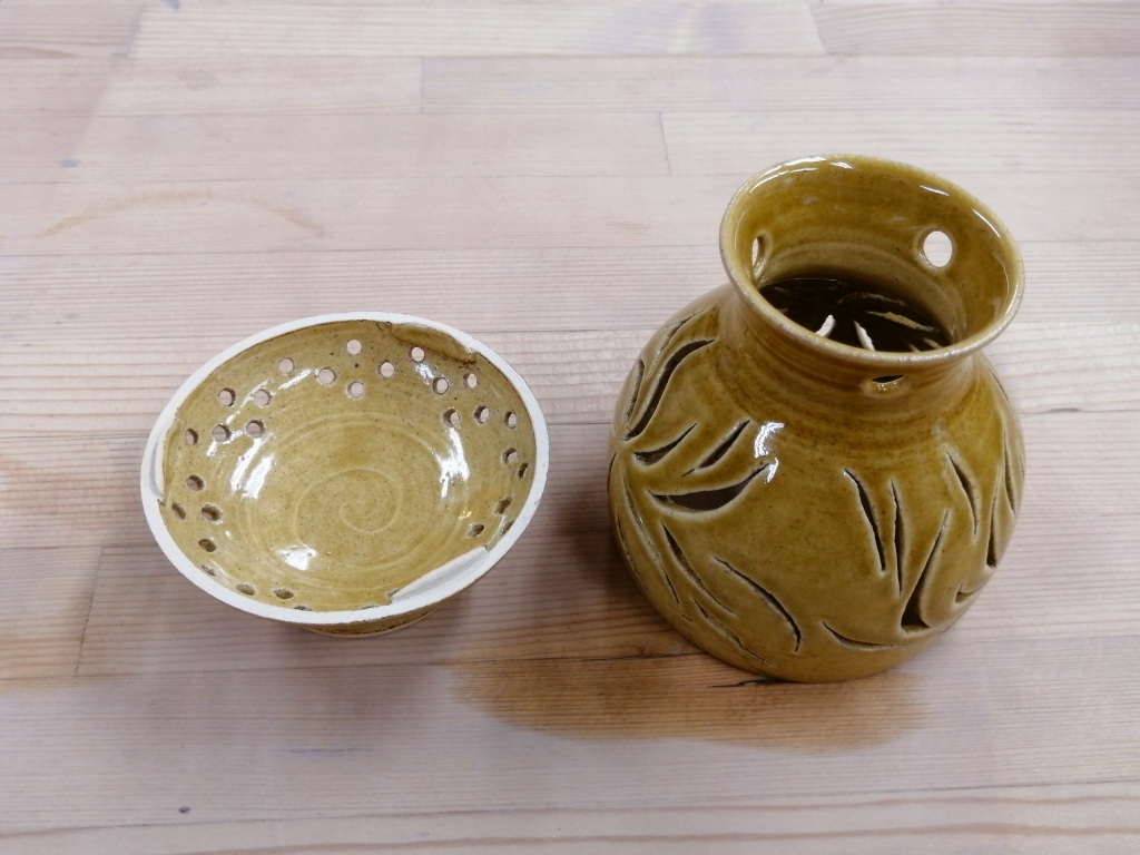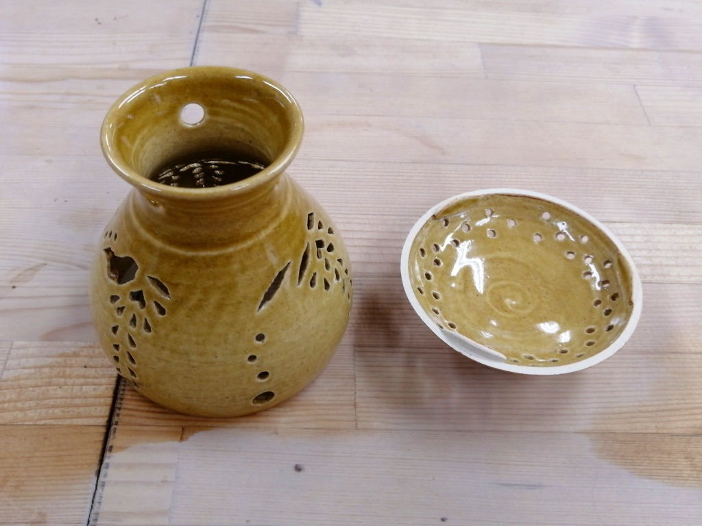今回のこちらの作品は、「茶香炉透かし彫り体験コース」で作っていただきました。
