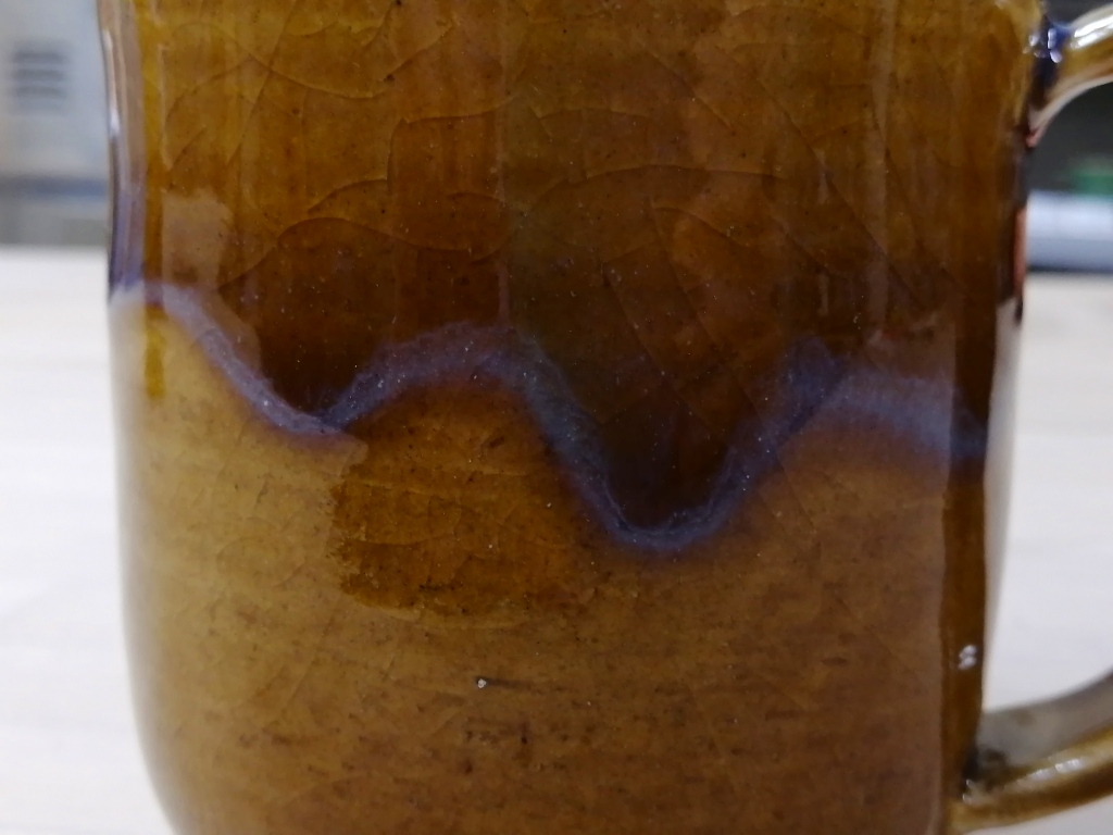 上部は厚掛け(二度掛け)して、流れた所が藤色に発色しています。