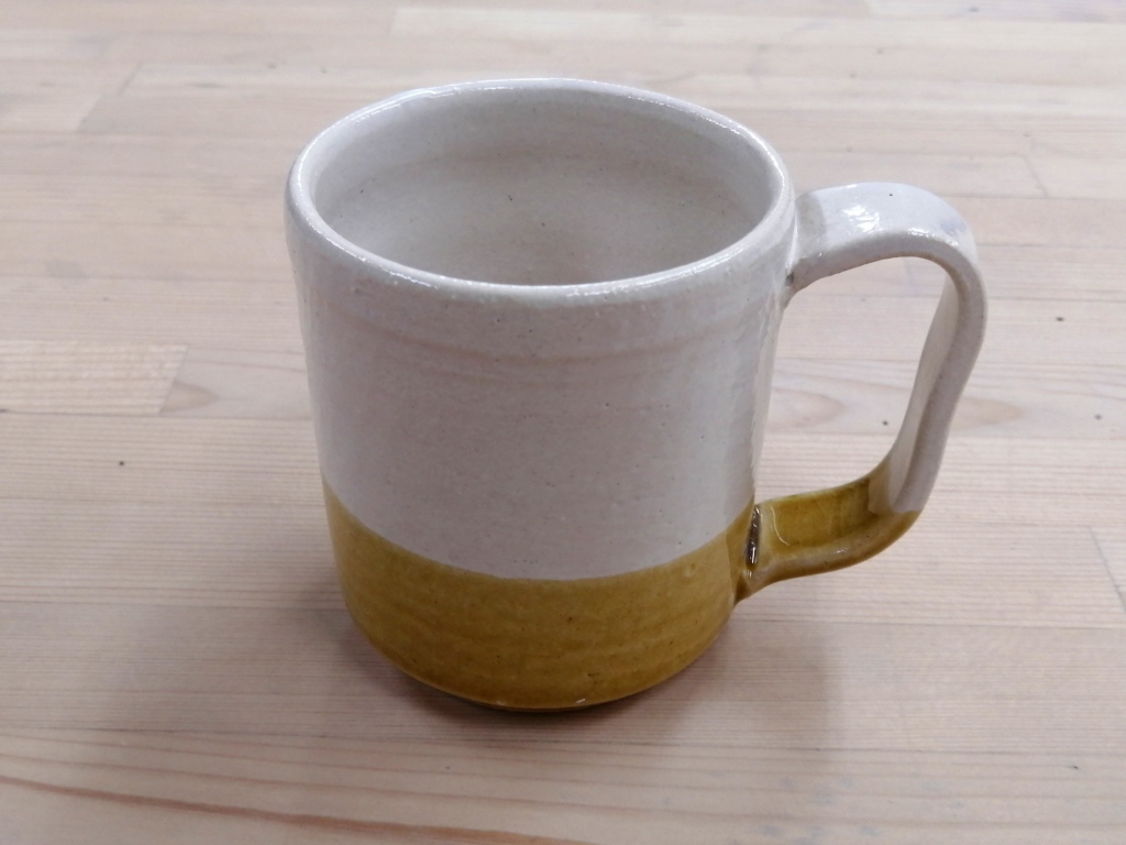 上部は白マット、下部は黄瀬戸釉です。